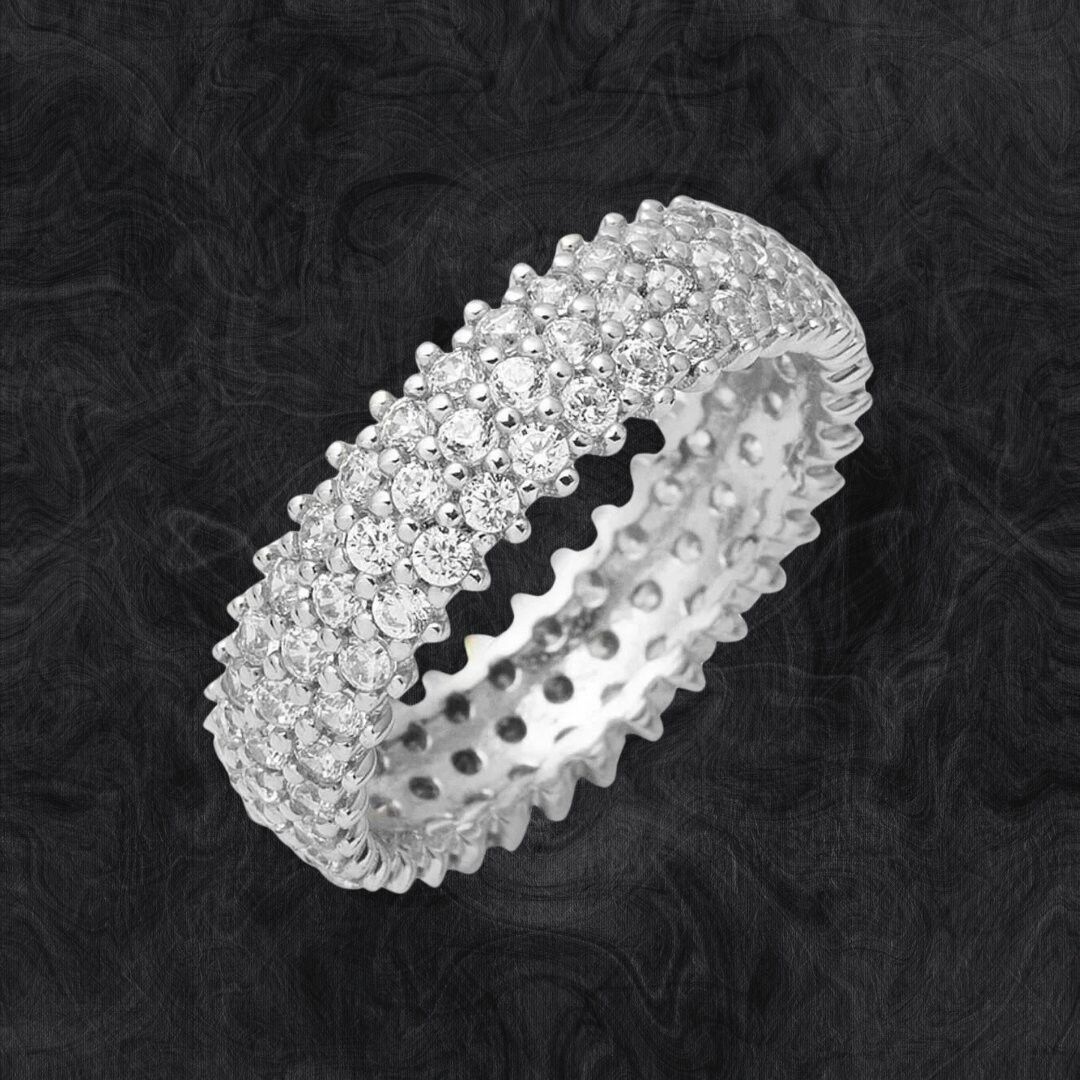 14 Ayar Altın 3 Sıra Beyaz Taşlı Tamtur Yüzük