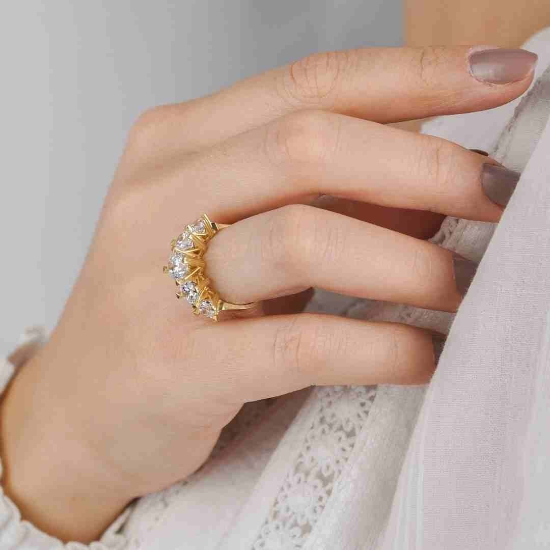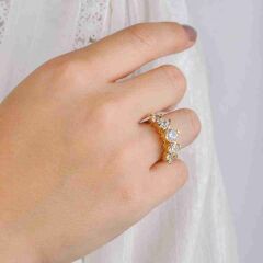 - Tasarım: Beştaş tasarımıyla dikkat çeken bu yüzük, klasik ve şık bir görünüm sunar. Beş adet taşın sıralandığı tasarımıyla, yüzüğe göz alıcı bir parlaklık ve ışıltı katmaktadır.