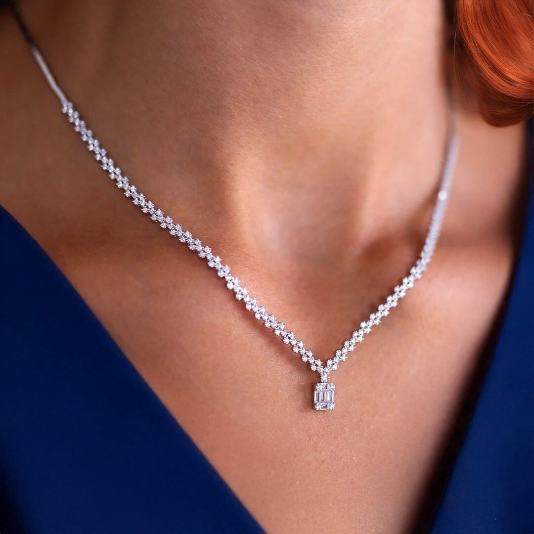 - Kolye, 45 cm uzunluğundadır ve baget kesimli zincir şeklindedir.