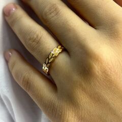 Bu şık ve zarif 14 ayar altın çiftli başak yüzük,\n\nDoğal ve organik formlardan ilham alınarak tasarlanmıştır . Başak motifleriyle sofistike bir görünüm sunar. Çiftli başak tasarımı, yüzüğe hem şıklık hem de farklı bir dokunuş katarken, altının parlaklığıyla göz alıcı bir duruş sağlar.\n\nÖzellikler:\n