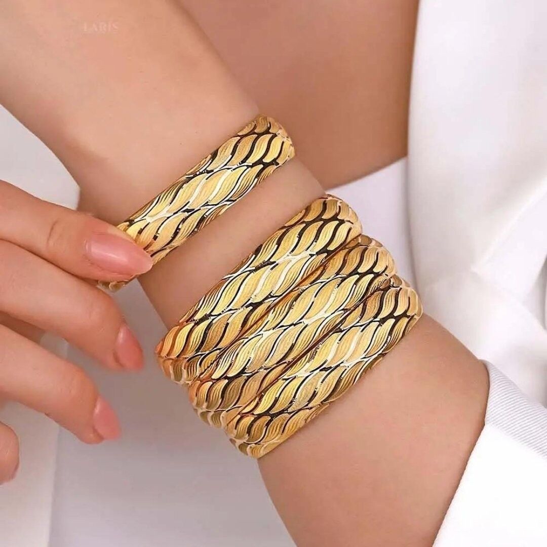 14 Ayar Altın Geniş Bilezik 9,00 Gram : Evla Kuyumculuk olarak sunduğumuz bu 14 Ayar Altın Geniş Bilezik, zarif ve şık tasarımıyla öne çıkıyor. Titizlikle üretilen bu bilezik, 9,00 gram ağırlığıyla hafif ve kullanışlı bir seçenektir.\n\nBileziğin sahip olduğu 14 ayar altın, yüksek kalitesiyle öne çıkmaktadır. Bu bilezik, altının değerini ve dayanıklılığını korurken, aynı zamanda parlaklığıyla dikkatleri üzerine çekiyor.