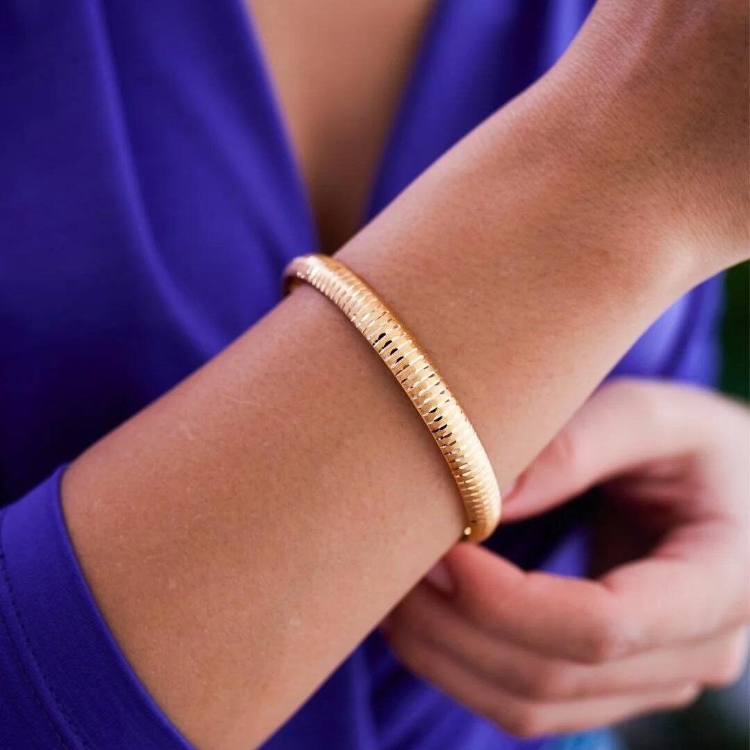 Evla Kuyumculuk'un 14 Ayar Altın İnce Bileziği, zarif ve şık bir görünüm sunan özel bir mücevherdir. Bu bilezik, yüksek kaliteli 14 ayar altından üretilmiş ve zarafetiyle öne çıkar. Bilezik, 14 ayar altın kullanılarak özenle üretilmiştir. 14 ayar altın, altının saflık oranını ifade eden bir derece olan 14 ayarı kullanır. Bu bilezikte kullanılan altın, parlak bir görünüm sunar ve dayanıklı bir yapıya sahiptir. Kaliteli işçilikle hazırlanmıştır.