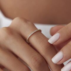 14 Ayar Altın İnce Taşlı Tamtur Yüzük