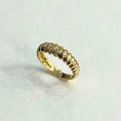 14 Ayar Altın Taşlı Meridyen Yüzük, kaliteli altın ve zarif işçilikle üretilmiştir. Taşlı meridyen tasarımı, yüzüğe modern ve şık bir görünüm kazandırırken, dayanıklılığı ve parlaklığı ile dikkat çeker. Bu yüzük, her türlü kombine kolayca uyum sağlar ve parmaklarınızda zarif bir duruş sergiler.