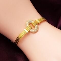 14 Ayar Altın Oval Halka Trabzon Hasır Bileklik, 7,95 gram ağırlığında olup, geleneksel Trabzon hasır işçiliği ile modern tasarımı bir araya getiriyor. Oval halka detayları, bilekliğe zarif bir dokunuş katarken, Swarovski taşları ile ışıltısını artırıyor.