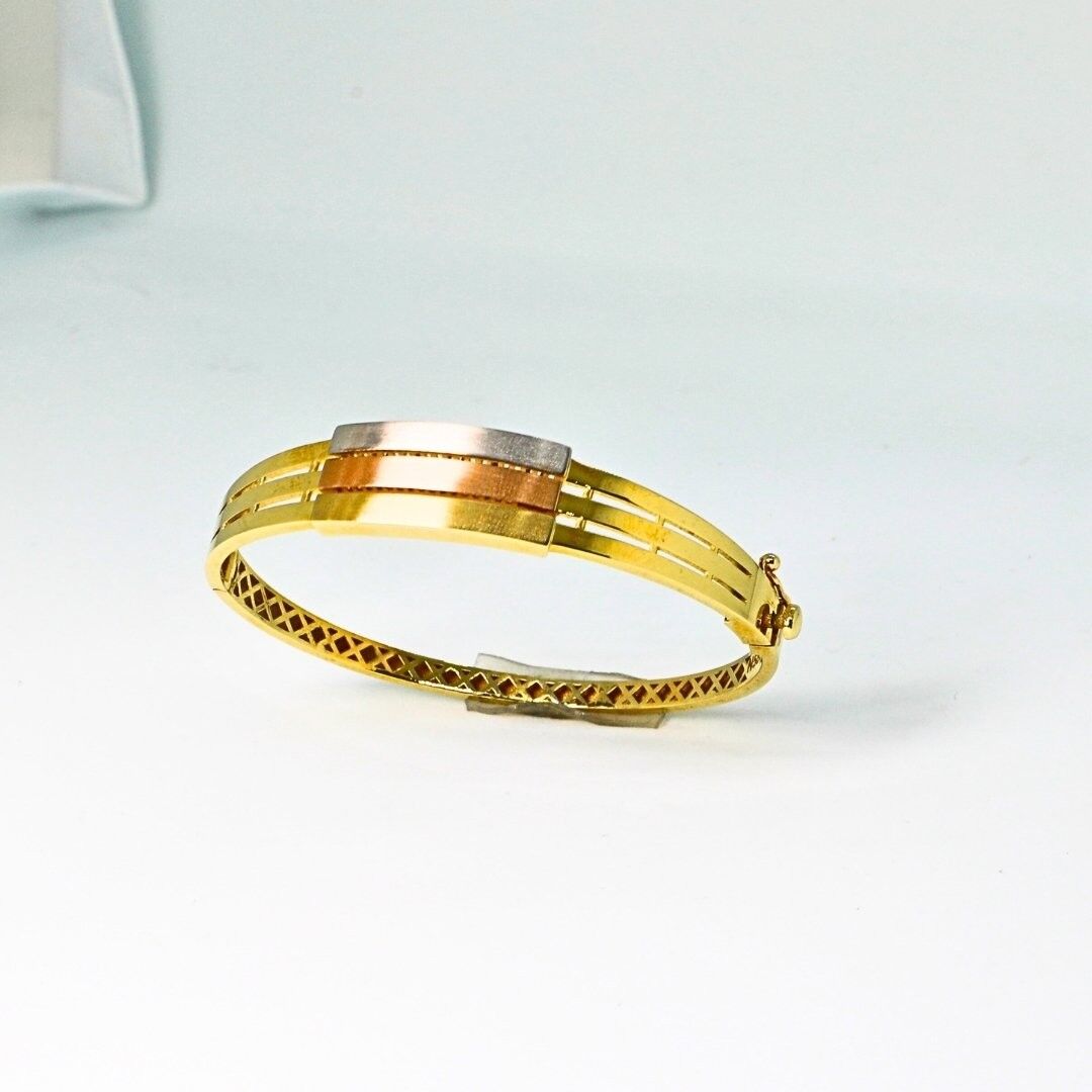 Zarafeti ve şıklığı bir arada sunan 14 ayar altın renkli kaburga kelepçe bilezik, modern ve estetik tasarımıyla göz dolduruyor. Bu özel bilezik, hem günlük yaşamda hem de özel anlarınızda stilinizi tamamlayacak mükemmel bir aksesuar olarak öne çıkıyor.