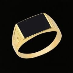 14 Ayar Altın Siyah Taşlı Erkek Yüzüğü