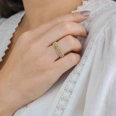 14 Ayar Altın Üç Sıra Renkli Dorika Yüzük