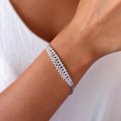Bileklik, 20 cm uzunluğundadır ve büyük yaprak motifli zincir şeklindedir.