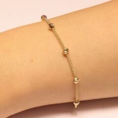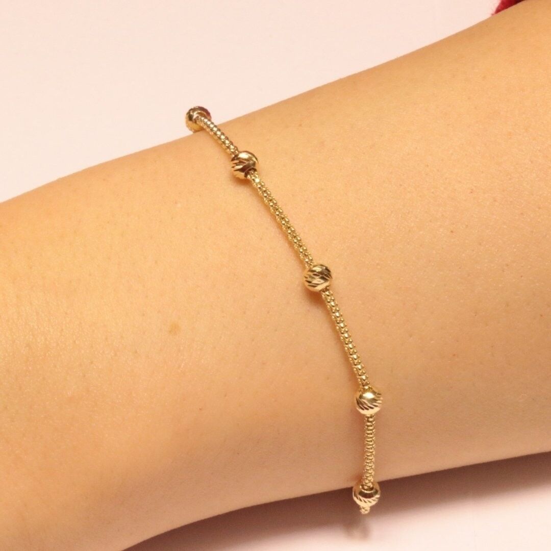 Bu 8 ayar altın Popcorn bileklik ile zarif tasarımıyla stilinize modern veışıltılı bir dokunuş katan şık bir mücevher parçasıdır.