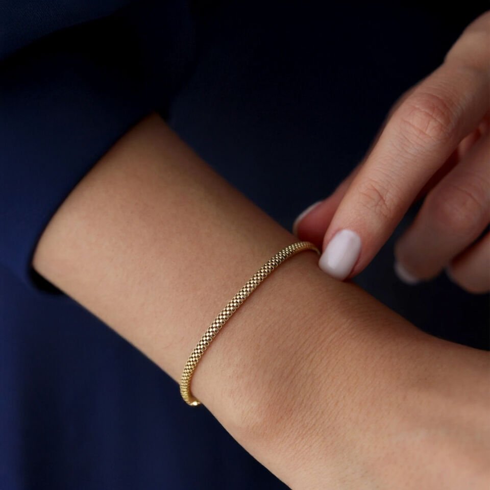Minimal ve zarif detayları sevenler için özel olarak tasarlanan Altın Jessica Bileklik, 14 ayar altının ışıltısıyla bileğinizde zarif bir dokunuş bırakır. Günlük kullanımda ya da özel anlarda stilinizi tamamlayan bu model, sade şıklığın en güzel örneklerinden biridir.